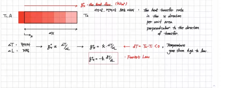 q`` = (-) k x dT/dL 를 붙인다고 강의에서 언급하셨습니다.