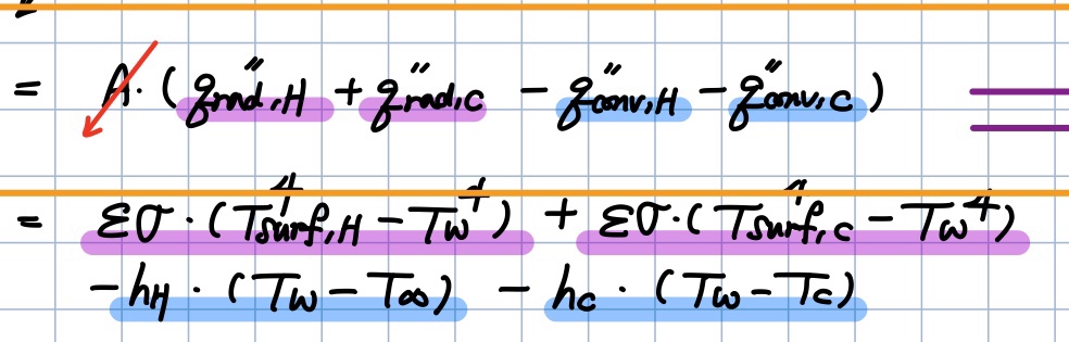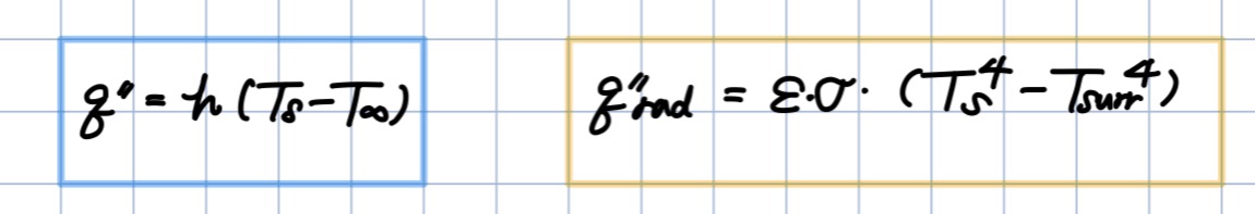 원래 대류,복사 공식이 대류는 h(Ts-T무한대) 이고 복사는 ea(Ts^4 - Tsurface^4) 인데