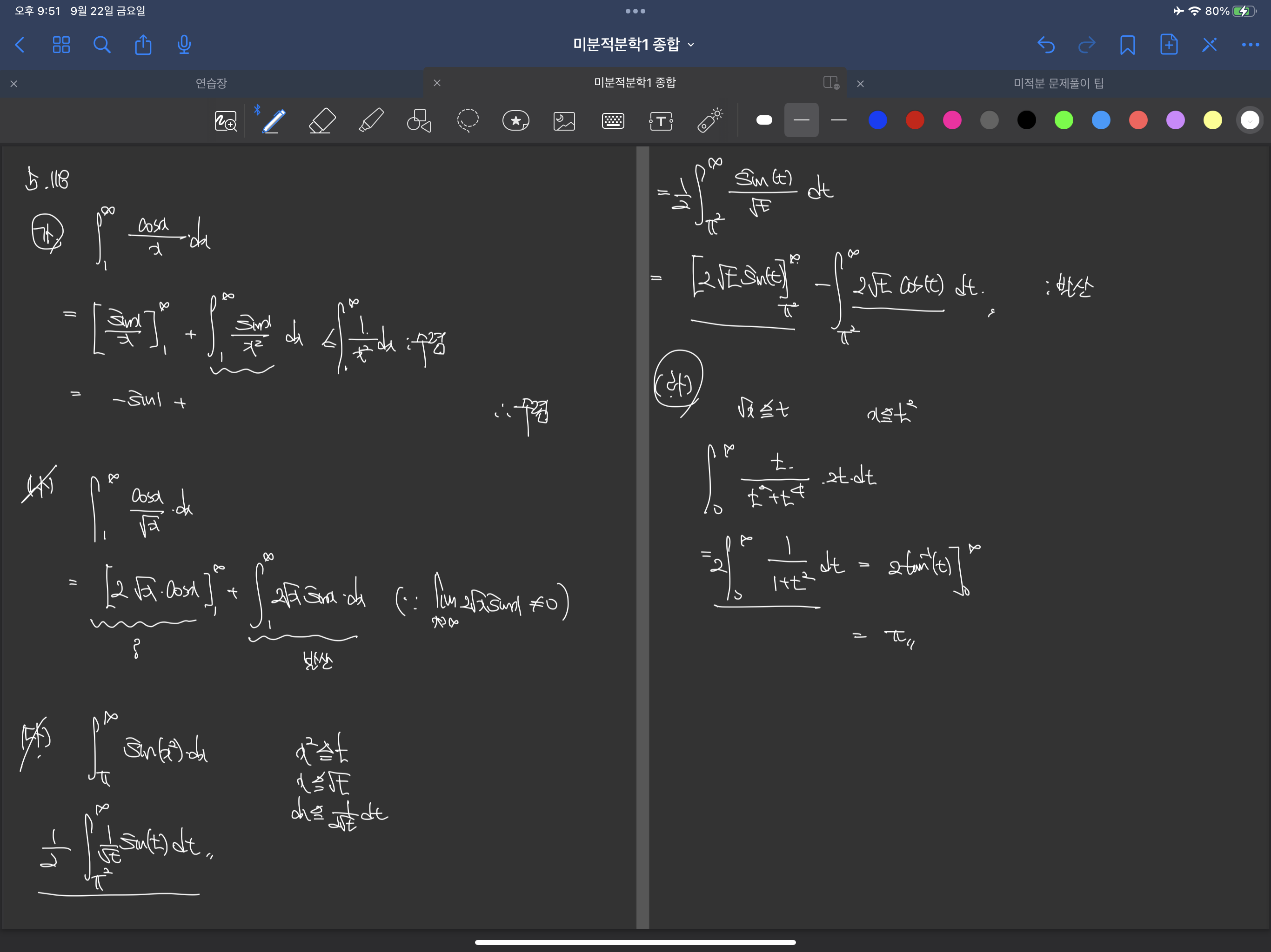 나 번과 다 번이 틀렸는데, 저 상황에서 무한으로 보내면 삼각함수 때문에 진동하게 되는데 어떻게 처리가 되는지 모르겠습니다… 다른 풀이 방법도 알고 싶지만 제가 만든 저 상황이 잘못된 이유가 궁금합니다 답변 완료된 질문과 답변은 수정 및 삭제가 불가합니다. |