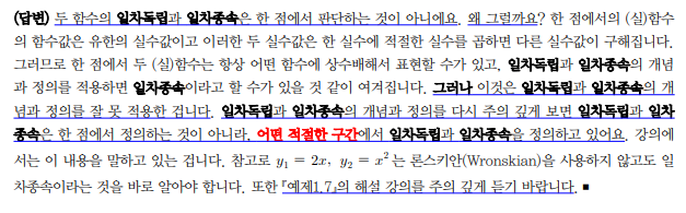 교수님께서는 y1=2x, y2=x^2 의 론스키안값이 2x^2 으로 나오자,