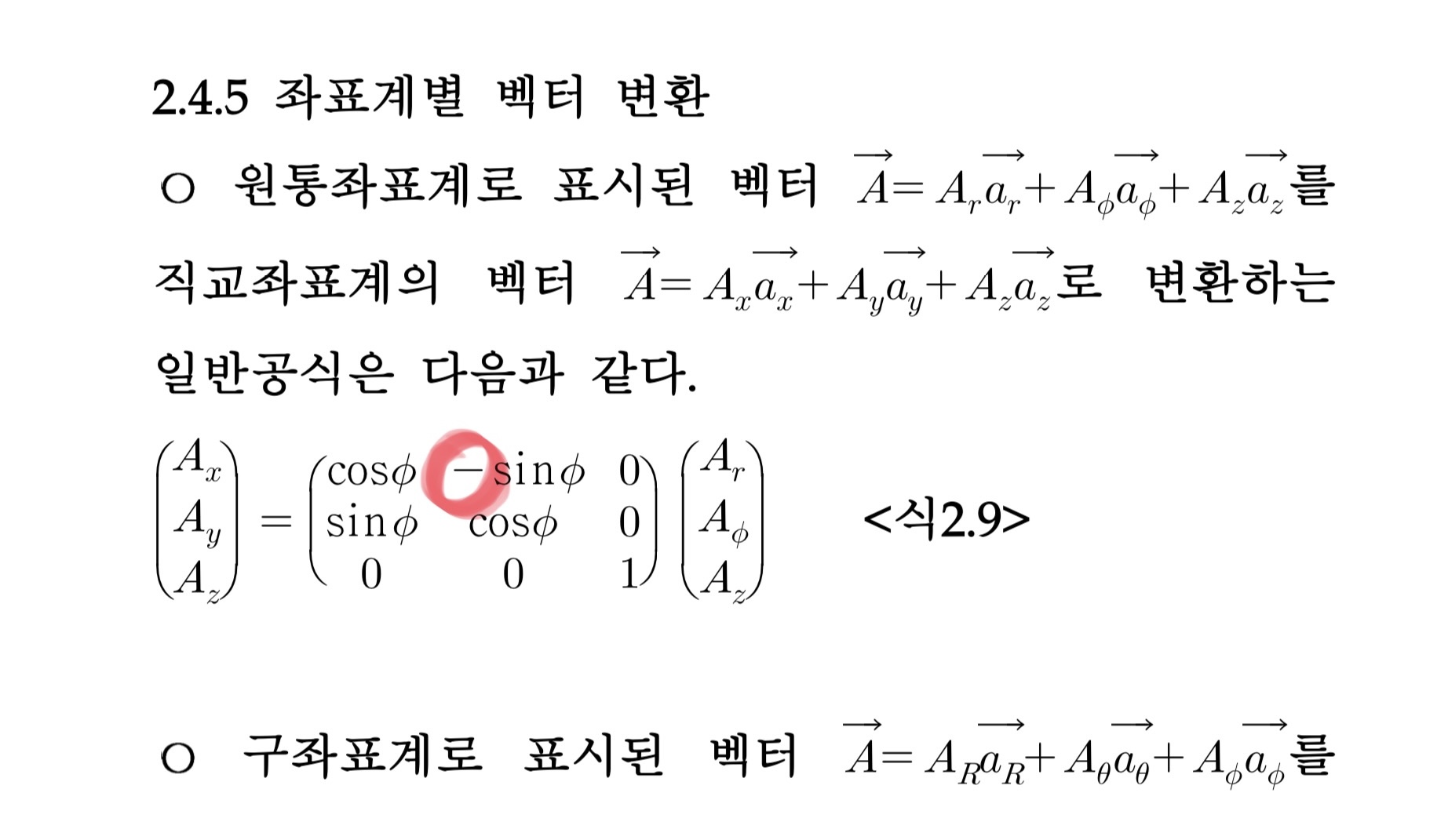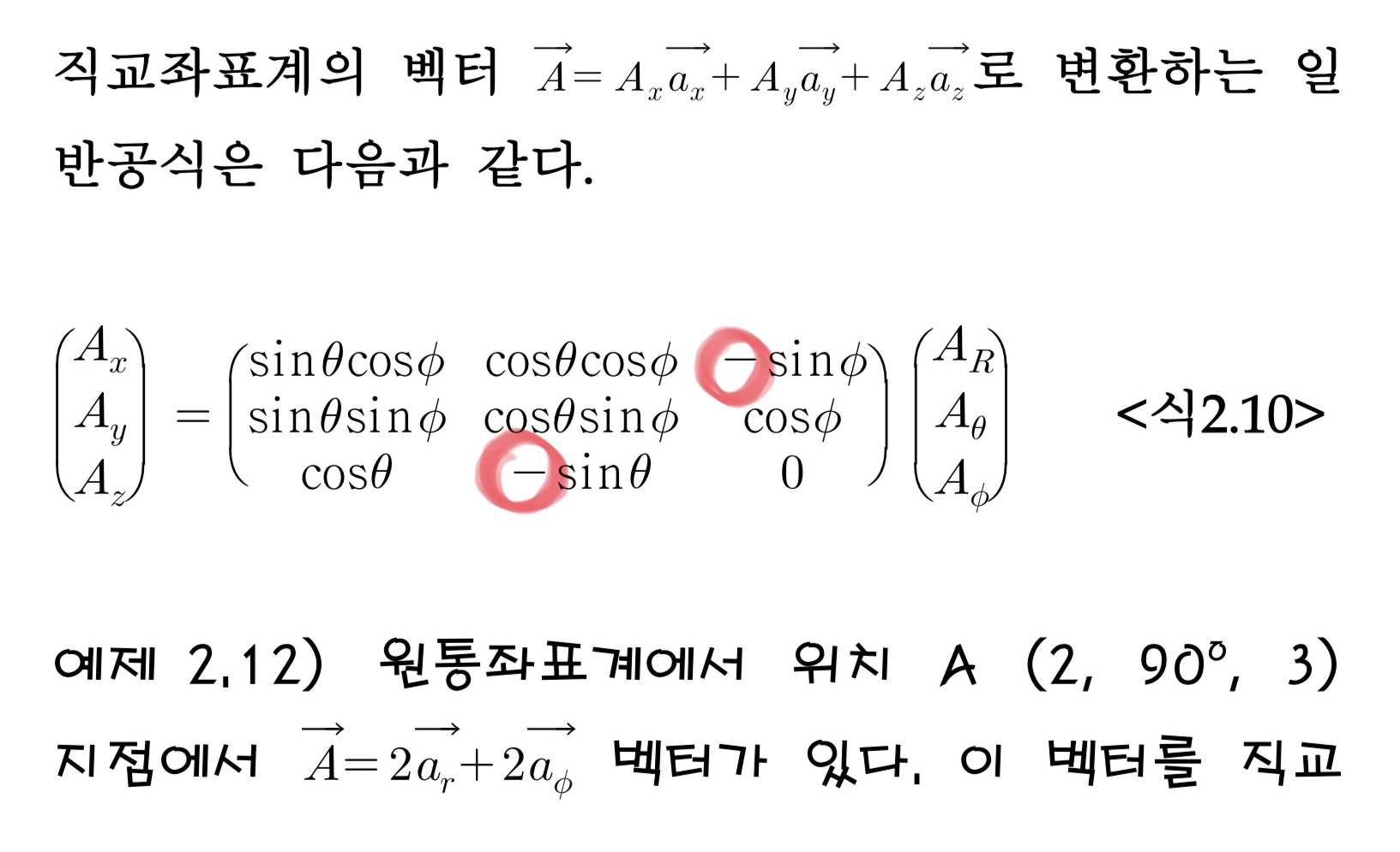 좌표계별 벡터 변환에서 방향 벡터를 내적하면 마이너스가 붙는 경우가 있던데 그것의 근본적인 이유가 궁금합니다! (사진 속에 빨간색 동그라미가 표시되어 있는 부분입니다)