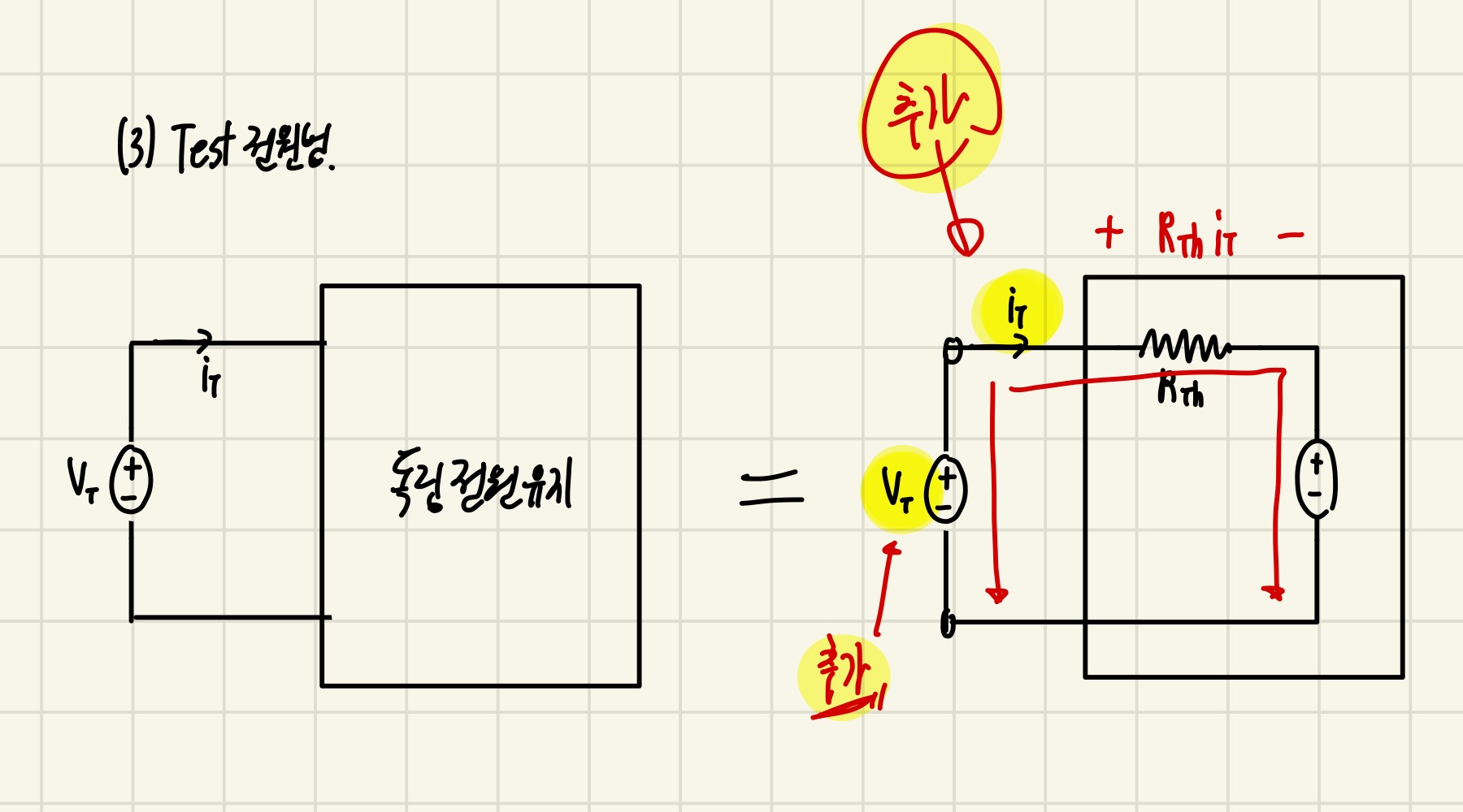 test전원법은 질문에서 언급하신 내용대로 이해하시면 무난합니다. 즉, 테브넌 등가회로는 Rth, Vth가 직렬로 연결된 구조인데 이때 단자에 Vt를 인가한 결과 단자에 It가 흐르는 경우(또는 It를 인가한 결과 단자 전압이 Vth인 경우) Vt=Rth*It+Vth의 관계가 성립한다는 것이 핵심입니다.