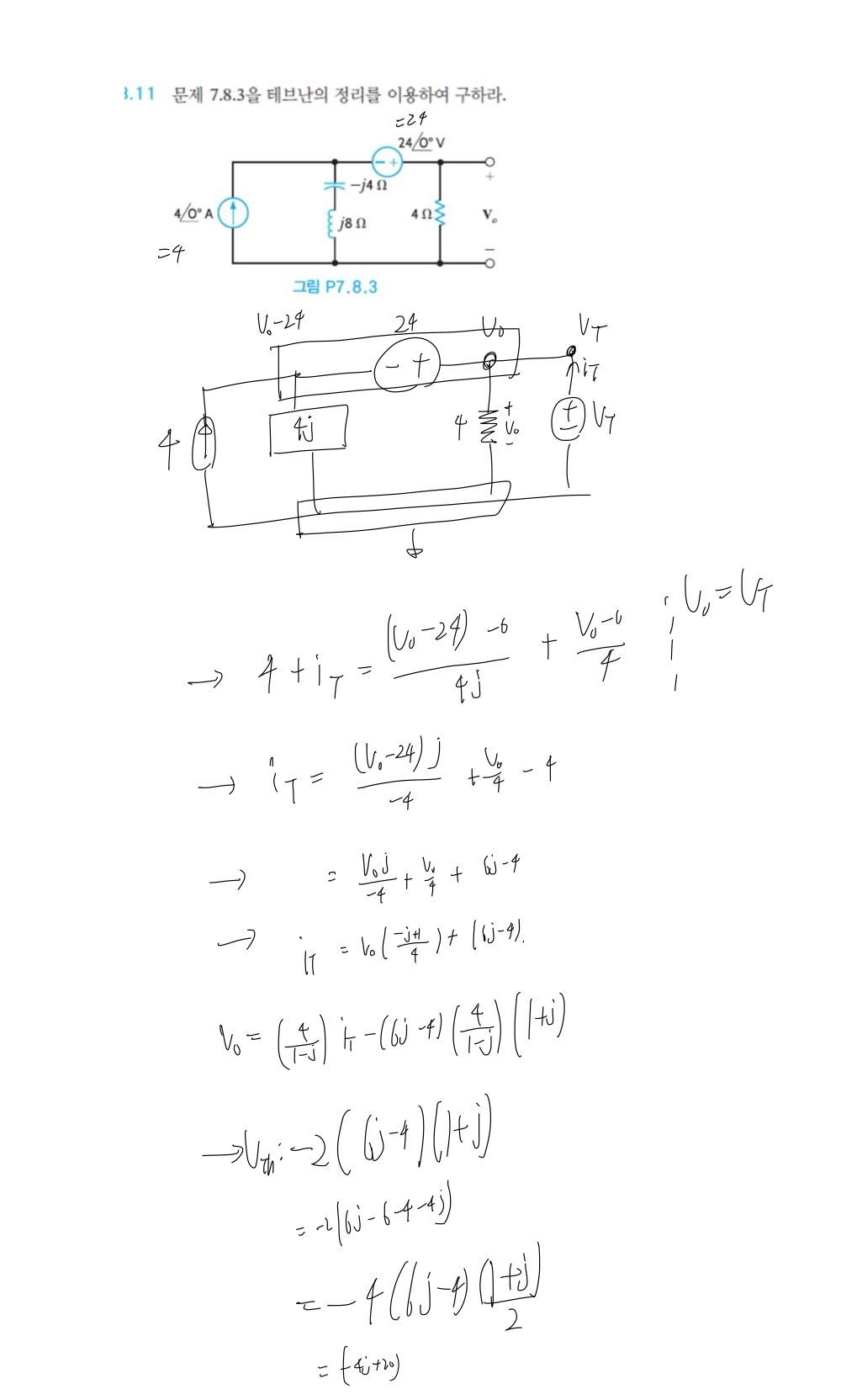 그런데 test전원법을 어떻게 이해할 것인지를 넘어서 기억해야 할 내용이 있는데요 원래 테브넌 정리란 Vth는 단자의 개방전압 Voc와 같고 Rth는 단자의 단락전류 Isc에 단자의 개방전압 Voc의 비와 같다(즉, Vth=Voc, Rth=Voc/Isc)는 것입니다. 즉, 테브넌정리는 회로도가 주어져 있는 상태에서 이를 수학적으로 해석하여 테브넌 등가회로를 구하는 것이 아니고 회로의 내부구조를 모르는 상태에서 전압계, 전류계 등으로 측정한 단자의 개방전압 Voc, 단락전류 Isc만으로 Vth, Rth를 구할 수 있다는 것입니다.(매우 획기적인 정리인데 회로도를 해석하여 Vth, Rth를 구하는 것에만 익숙해져 있으면 그 진가를 알기 어렵습니다.) 따라서 문제에서 테브넌 정리를 이용하라고 하였으면 원래의 내용에 따라 Voc, Isc를 각각 구하여 이를 바탕으로 Vth, Rth를 구하는 것이 맞습니다.(test전원법은 회로도가 주어져 있고 이를 계산상 편리하게 구하기 위한 여러 방법 중 하나입니다.)