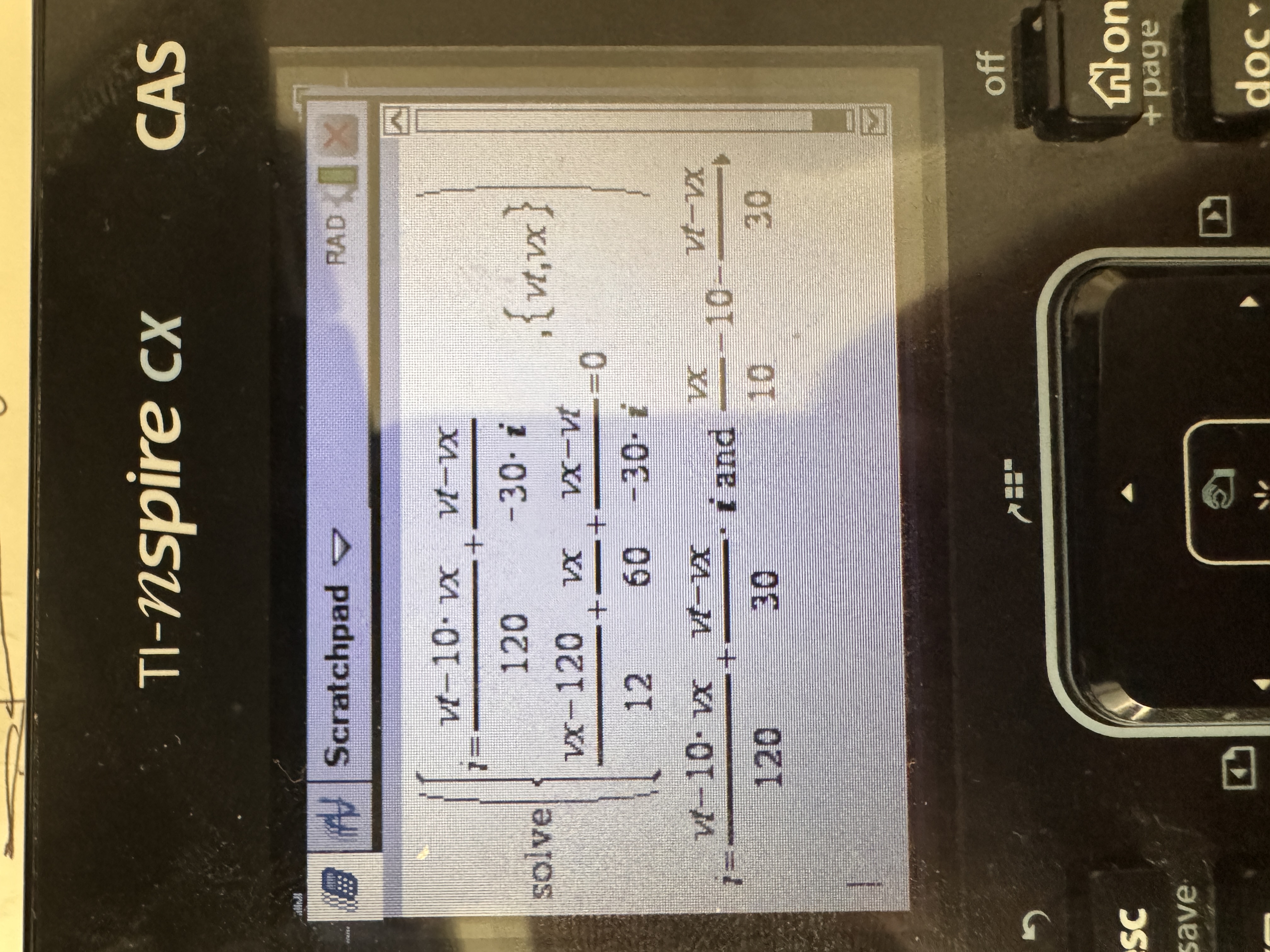 안녕하세요 교수님 현재 교재파일 p148쪽에 있는 문제를 푸는 와중에 마지막에 등가회로 를 구할때 공학용 계산기를 사용했습니다. 연립을 푸는 과정에서 계산기 menu 3 - 7 - 1을 눌러서 vx,vt를 2개의 변수로 설정후에 나머지 식을 넣고 엔터를 누르면 예상대로라면 vt = ~~it에 대한 식으로 나와서 테브난 등가회로를 구할수있어야 합니다. 하지만 저는 엔터를 눌러도 변수로 정리된 식이 나오지 않고 계속 입력한 두개의 식이 정리만 되서 그대로 ~~~ and it = ~~~로 그대로 출력이 됩니다. 강의에서 다뤄주신 식, 실제로 올려주신 식 그대로 입력해도 이와 같은 현사잉 계속 나옵니다. 그전에는 이렇지 않았는데 아무래도 문자가 많아서 오류가 난것 같습니다. 어느 부분에서 제가 계산기를 잘못 다루었는지 모르겠습니다. 감사합니다. 답변 완료된 질문과 답변은 수정 및 삭제가 불가합니다. |