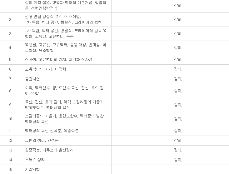 | 과목 | 선형대수학 | 강좌명 | [선형대수학] 선형대수학 (핵심) |