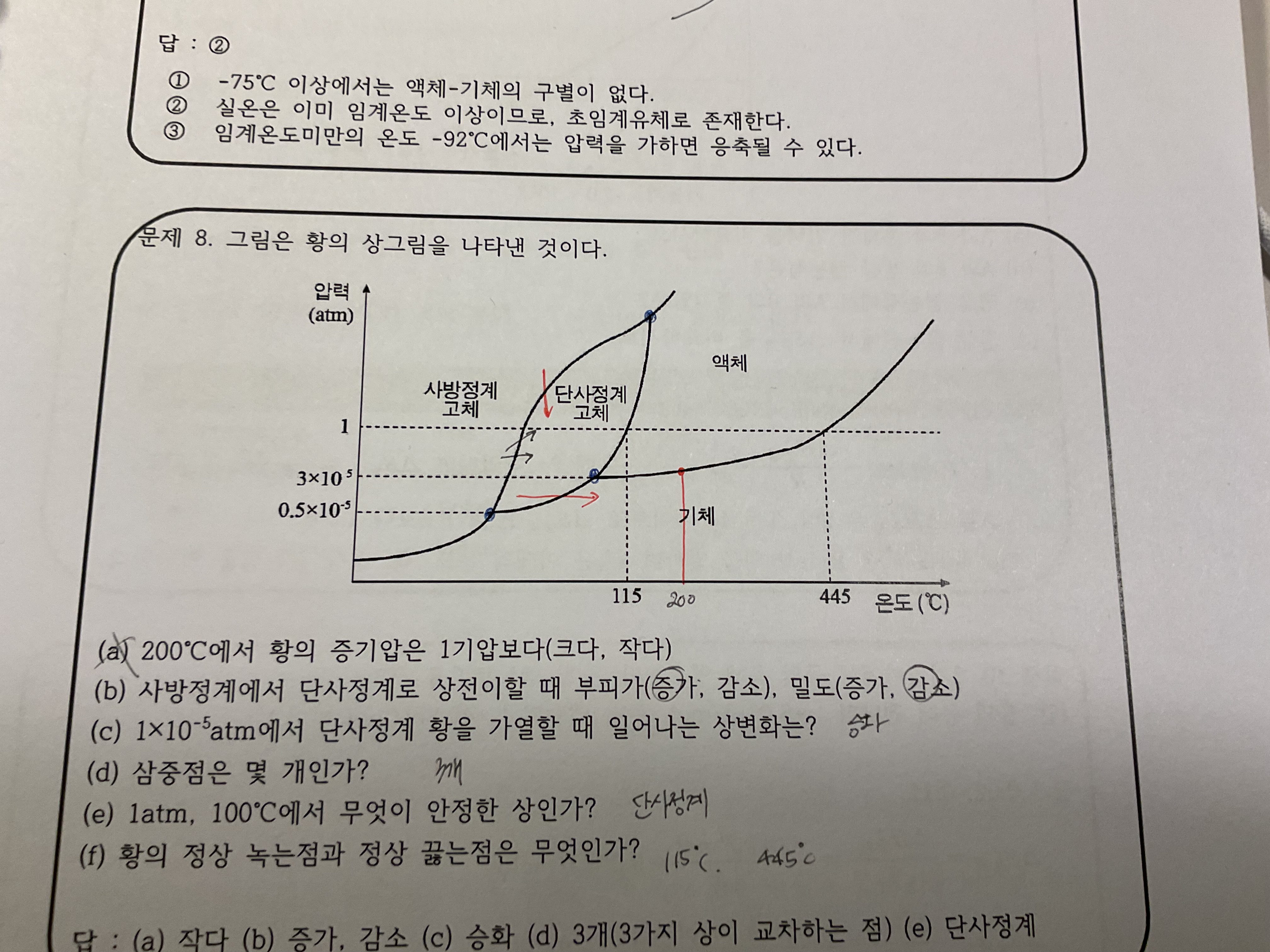 상전이시 밀도에 대한 판단관련 문제를 푸실때는 압력의 변화에 따른 부피의 변화를 봐야하기 때문에
