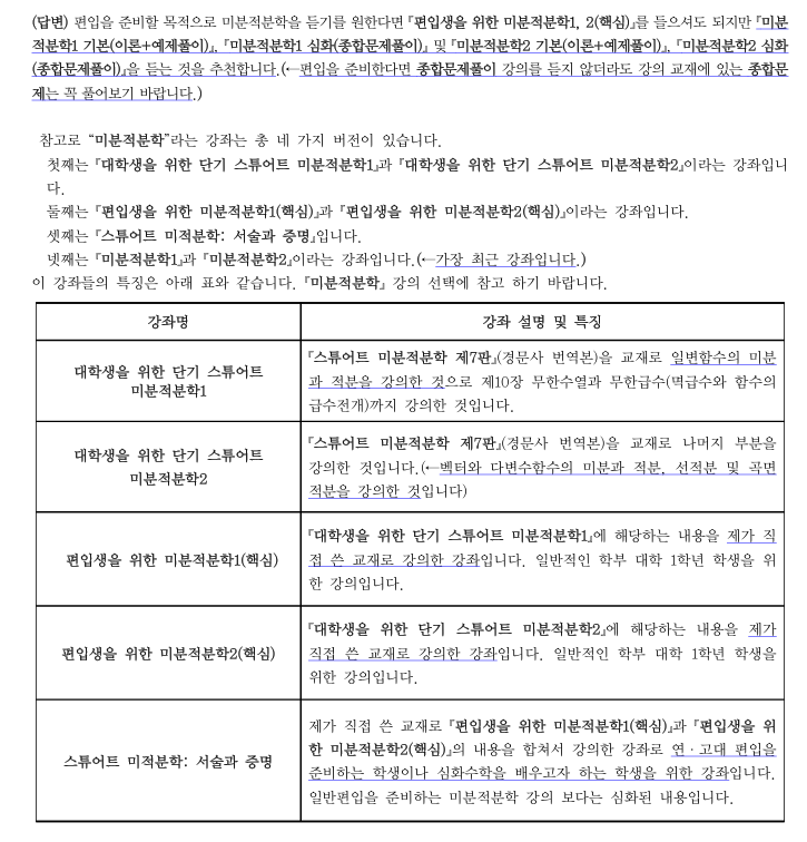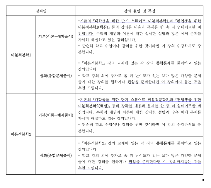 이 강의가 편입생을 위한 미분적분학1 이라고 되어있는데 편입시험을 위해서 공부하는 편입생이 공부할때 들어도 되는거 맞나요?