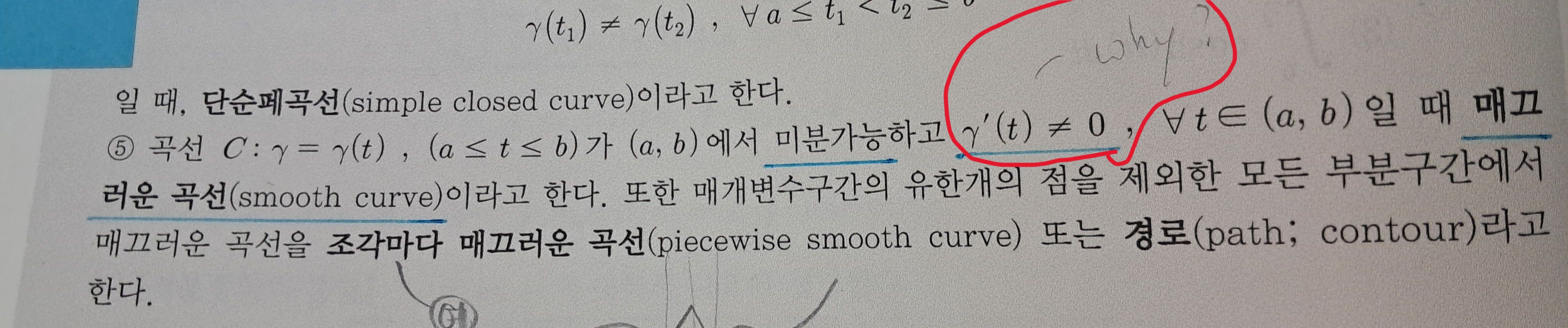 안녕하세요? 공학수학2-94페이지- 36강 듣다가 궁금한 점이 있어 질문 남깁니다. 매끄러운 곡선 정의가 “미분가능하고 감마프라임t가 0이 아니어야한다”고 되있는데(첫번째 사진 첨부) 감마프라임t가 반드시 0이 아니어야 하는 부분이 이해가 잘 안됩니다. 예로 (두번째 사진 첨부) 사진처럼 1)과 2)는 감마프라임t가 0인 구간(혹은 점)이 존재하는데, 저는 매끄러운 곡선이라고 생각하거든요. 시각적으로만 매끄러운 곡선일뿐, 정의에 의한다면 1)과 2)는 매끄러운 곡선이 아닌 걸까요? 답변 완료된 질문과 답변은 수정 및 삭제가 불가합니다. |