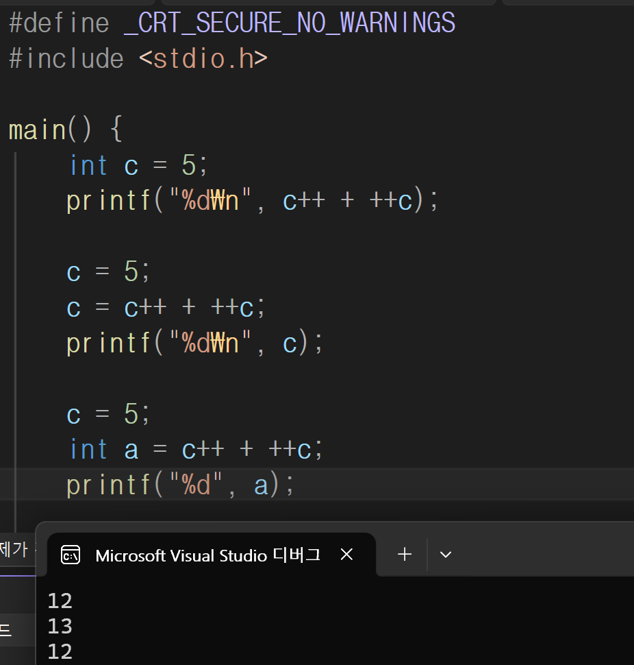 안녕하세요 교수님, 첨부한 사진에서 세 출력값이 모두 12이어야 할 것 같은데 왜 중간 값이 13이 나오는지 이해되지 않습니다. 설명 부탁드립니다. 답변 완료된 질문과 답변은 수정 및 삭제가 불가합니다. |