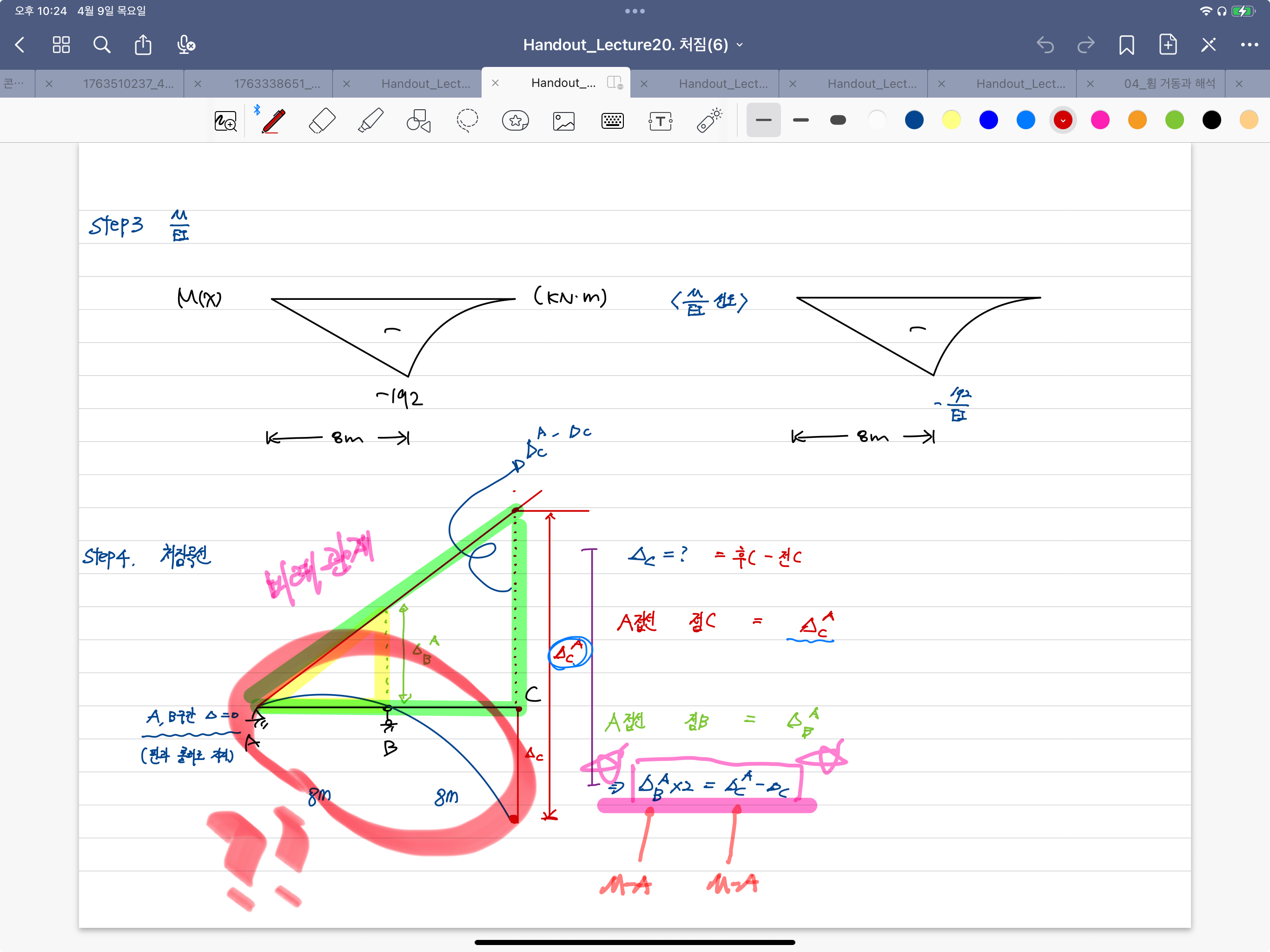 왜 a,b 구간의 처짐 곡선이 위로 볼록인가요 ? 핀과 롤러로 지지되어 있으면 처짐이 0이라 아래로 볼록하게 나타나지 않나요 ?