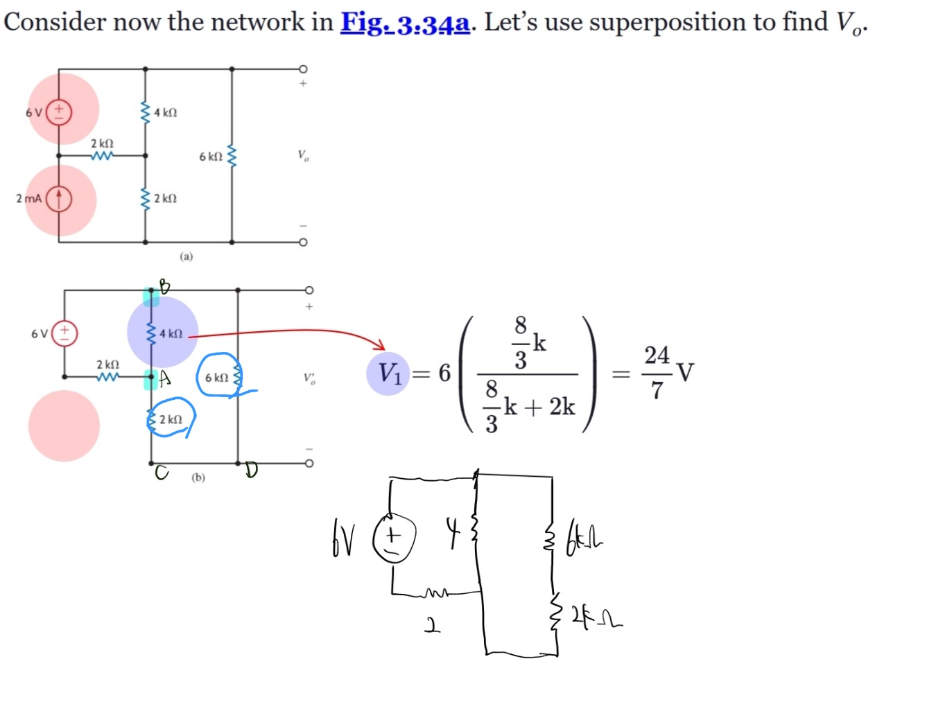 (b)에서 파란색으로 동그라미 친 2킬로옴과 6킬로옴이 같은 전류가 흐르는지 알 수 없기에 서로 직렬이 아닌건가요..? 근데 학교에서 교수님께 질문했을 때 검은색처럼 회로를 바꿔서 생각할 수 있다고 하시면서 2킬로옴이랑 6킬로옴을 더해서 8킬로옴이라고 하셨던 것 같습니다. 전류원을 개방시킨 (b) 회로에서 진짜 2킬로옴이랑 6킬로옴이 직렬이 아닌가요..? (전류원 개방시킨 (b)에서 2킬로옴에서 6킬로옴을 가려면 다른 노드로 갈라지지 않고 6킬로옴으로 가는 길밖에 없는 것 같아서요) 그리고 검은색처럼 2킬로옴을 저렇게 옆 노드로 옮겨서 바꿔도 되는 건가요..?ㅠㅠ 답변 완료된 질문과 답변은 수정 및 삭제가 불가합니다. |