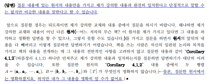 아래는 임계수 교수님께서 질문 내용에 대한 답변이 어려운 점에 대해 추가 답변 주신 내용입니다.