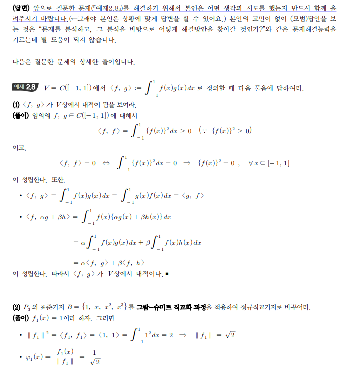 | 제목 | 답변완료 선형대수학 / 내적공간과 직교화 / 내적공간과 직교화 예제 2.8 | ||