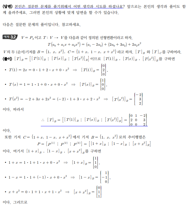 | 제목 | 답변완료 선형대수학 118p 예제3.2 풀이좀알려주세요 ㅜ | ||