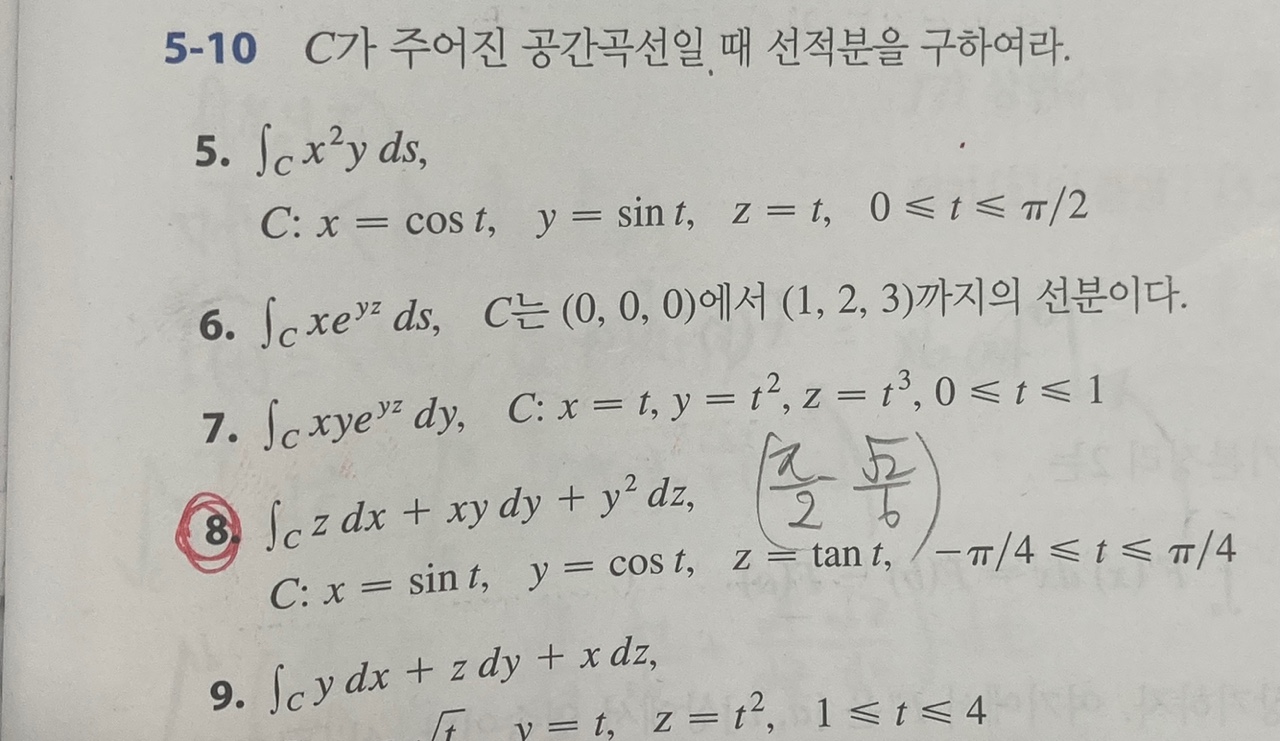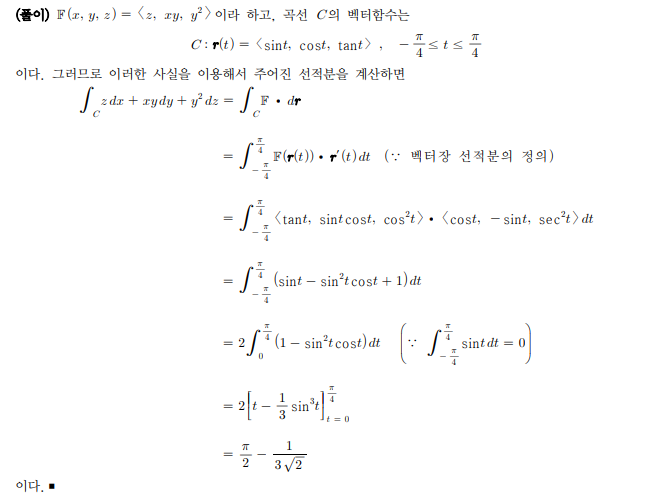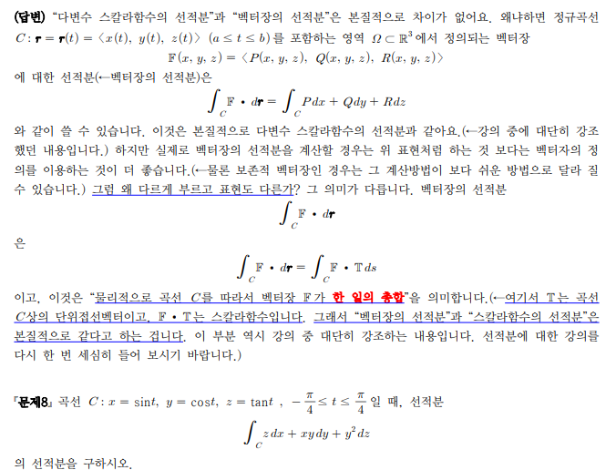 15장 2절의 연습문제 8번의 경우 스칼라 함수의 선적분을 벡터장의 선적분 즉 백터장이 곡선 C에서 한 일로 계산해도 무방한가요?