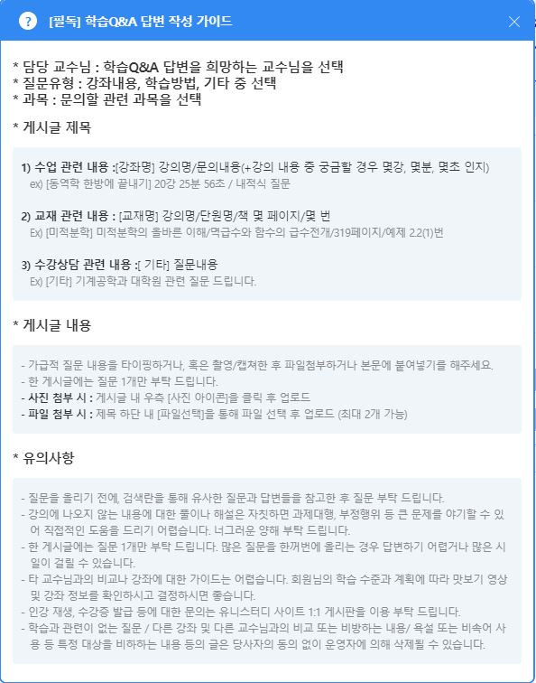 이후에는 강의자료 외 질문에 관해서는 답변 어려운 점 참고 부탁드립니다.