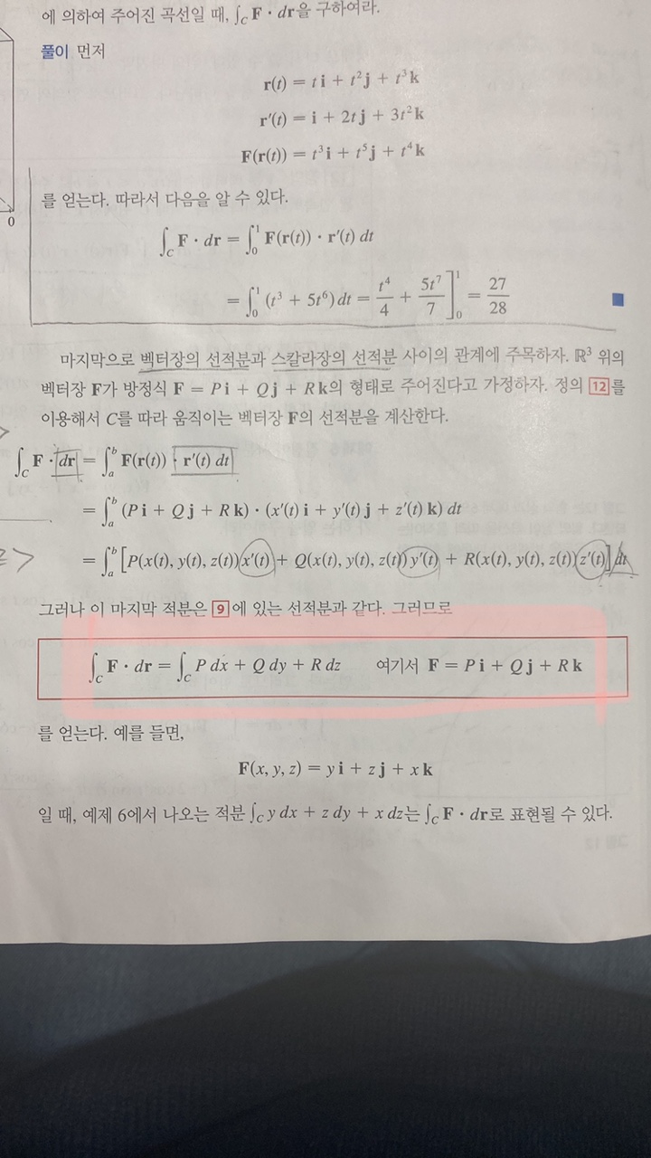 안녕하십니까 교수님, 벡터장의 선적분은과스칼라 함수의 선적분의 관계에 대한 식을 교재 756p.에서 공부하던 중, 벡터장의 선적분을 스칼라 함수의 선적분으로 표현할 수 있다고 나타나 있습니다.