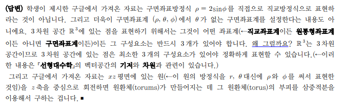 | 제목 | 답변완료 재질문) 미적분학 2 / 다변수 함수의 삼중적분 / 구면좌표계 | ||