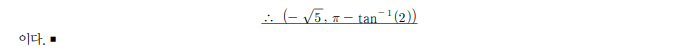 (4)문제의 풀이가 궁금합니다. 극좌표의 세타값을 tan의 역함수로 표현하여 어떻게 구하는지 잘 모르겠습니다. 답변 완료된 질문과 답변은 수정 및 삭제가 불가합니다. |