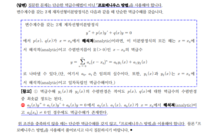 ---------------------- 다음 미분방정식의 해를 구하기 위해 `멱급수 해법`을 이용했습니다.