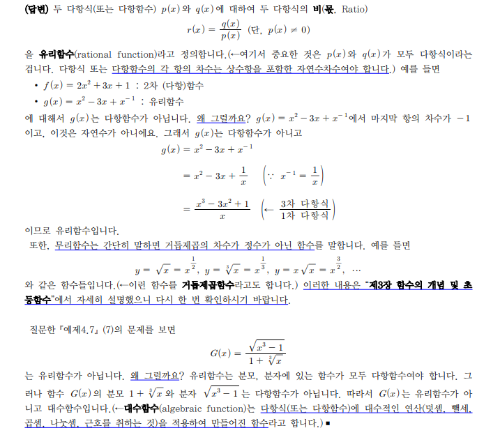 (7)번이 왜 유리함수가 아니고 대수함수인가요?