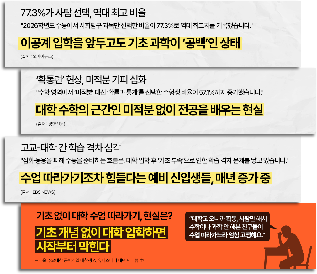 → 이공계 입학을 앞두고도 기초 과학이 ‘공백’인 상태