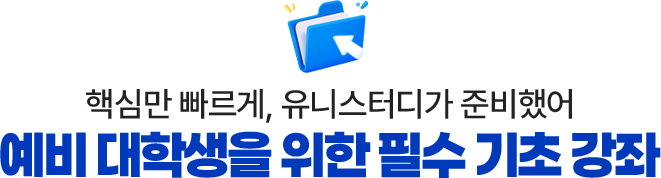 입학 전 이 시기, 빠르게 핵심만 끝낼 수 있도록 유니스터디는 준비 완료