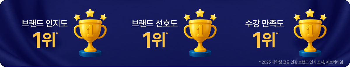 브랜드 인지도 1위 / 브랜드 선호도 1위 / 수강 만족도 1위