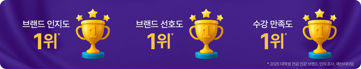 브랜드 인지도 1위 / 브랜드 선호도 1위 / 수강 만족도 1위