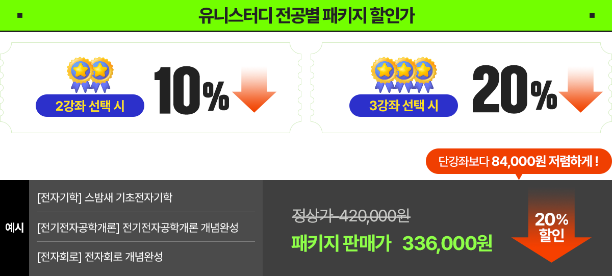 내 전공에 딱 맞는 강의만 모았다! 알짜배기 강의들을 모아 최대 20% 할인