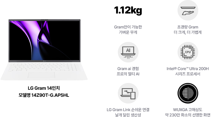 - 1.12kg Gram만이 가능한 가벼운 무게