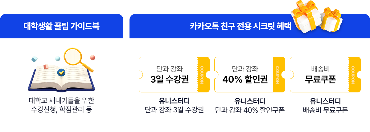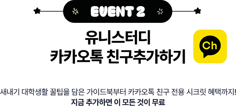 새내기 대학생활 꿀팁을 담은 가이드북부터 카카오톡 친구 전용 시크릿 혜택까지!