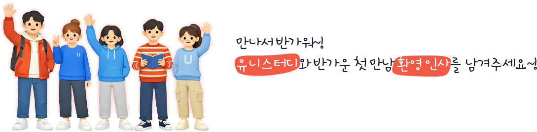 만나서 반가워~! 유니스터디와 반가운 첫 만남 환영 인사를 남겨주세요~!