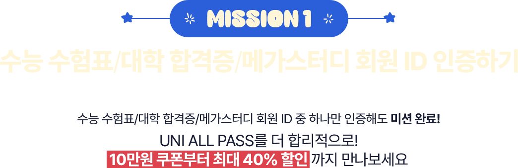 수능 수험표/대학 합격증/메가스터디 회원 ID 중 하나만 인증해도 미션 완료!