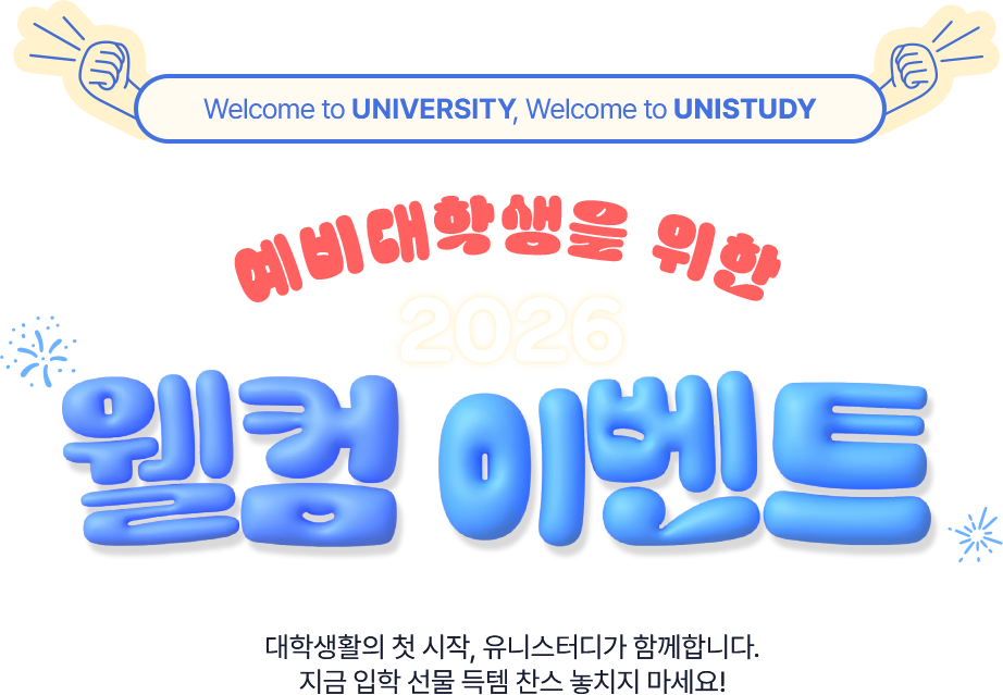 대학생활의 첫 시작, 유니스터디가 함께합니다. 지금 입학 선물 득템 찬스 놓치지 마세요!