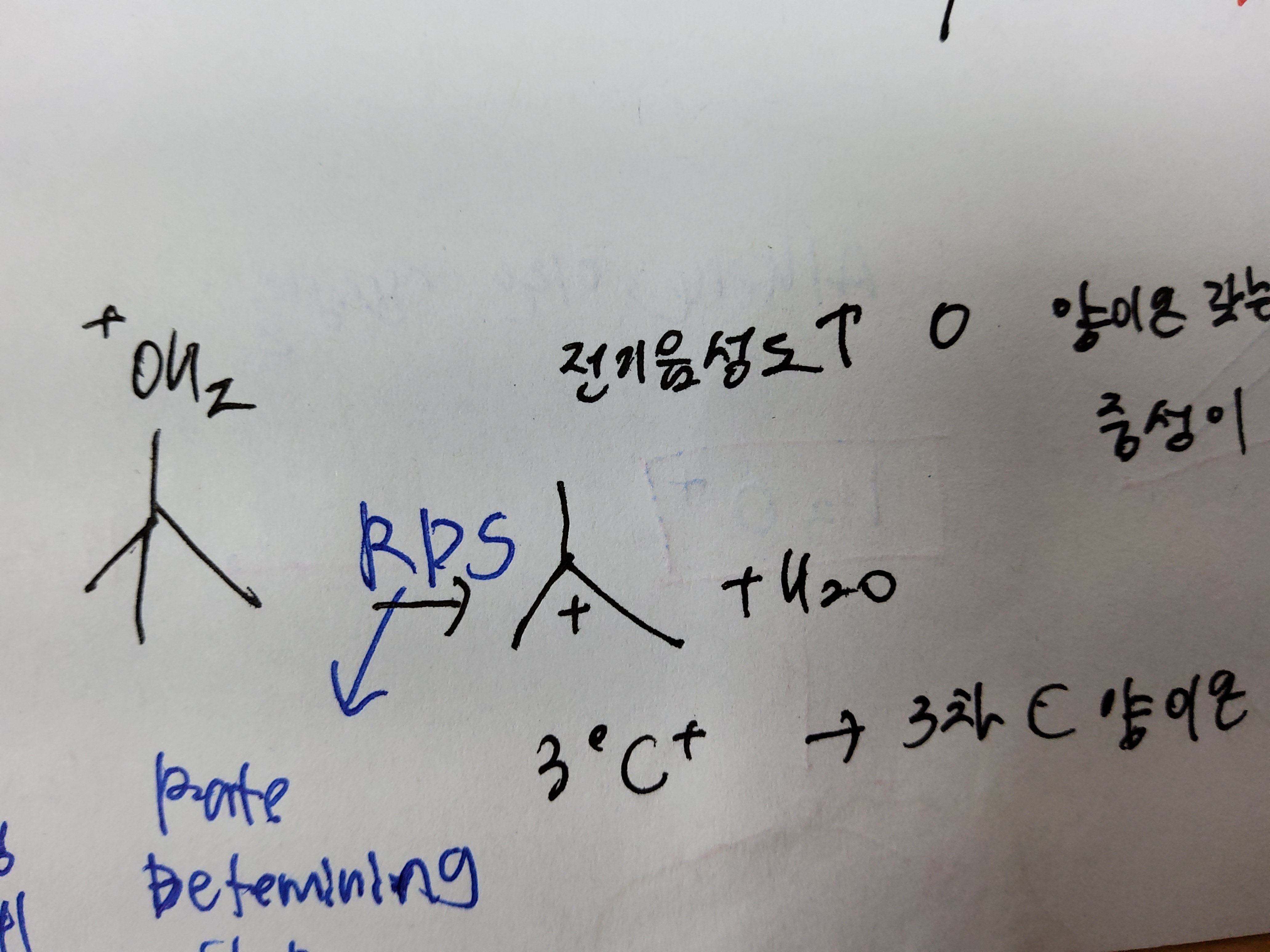 1. 물의 산소가 비공유 전자쌍을 탄소양이온에게 주는 것 = 산소의 비공유 전자쌍이 들어 있는 sp3 혼성오비탈이 탄소의 비어있는 p오비탈과 겹치는 것