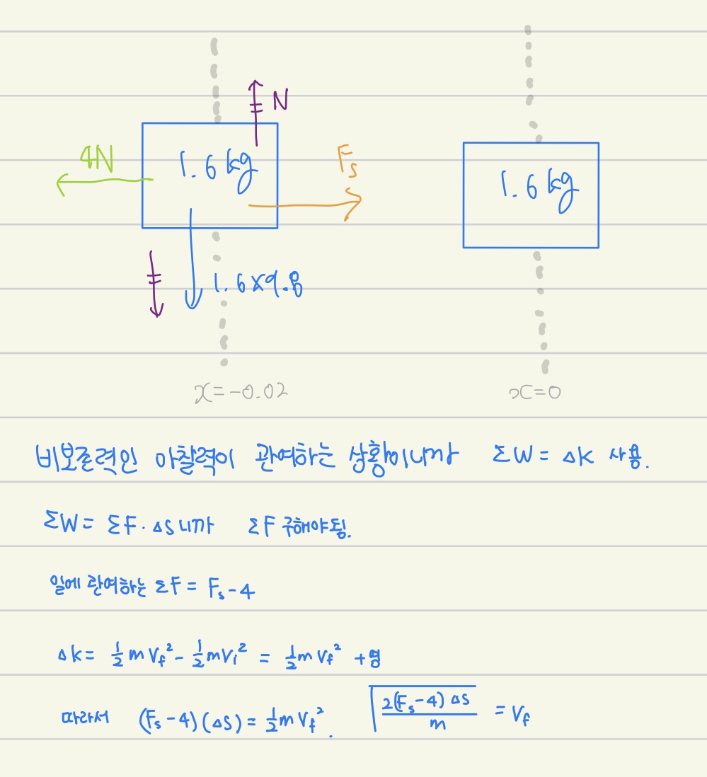 아래와 같이 풀면 안되는 거죠? (0.02m 이동하는 동안에 F s가 일정하지 않으니까)