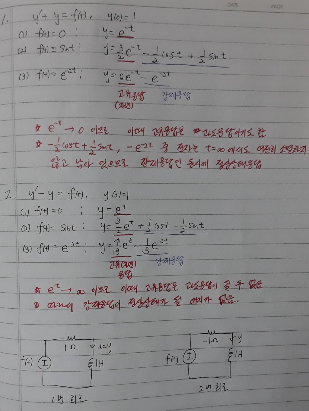 1. 자연응답과 계단응답도 비슷한 맥락인것 같은데 고유응답=자연응답 ,강제응답=계단응답 이렇게 볼 수 있나요?