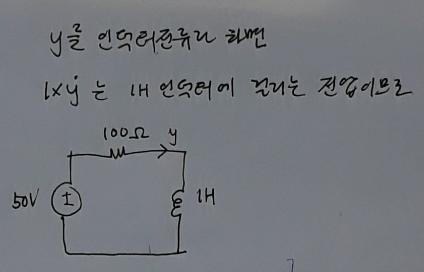 첨부사진과 같이 인덕터전류를 y로 두면 전압원, 저항, 인덕터로 구성된 1차 회로를 구현할 수 있습니다.