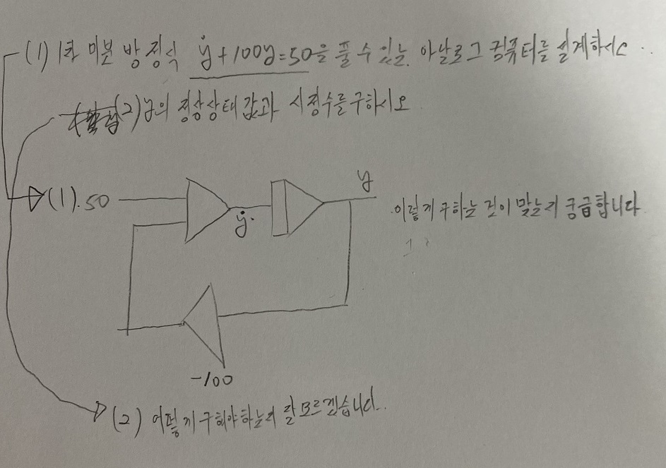 보통 미분방정식을 풀기 위한 회로는 오피앰프를 써서 구현하는데요