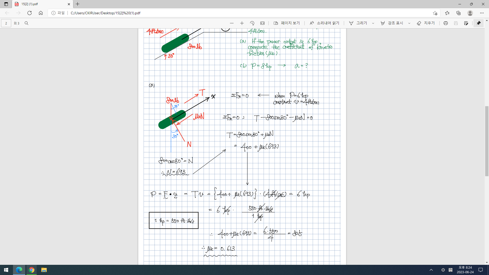 #일률 #운동량 #운동량보존 예제 3.14 풀이에서 P=F·V에서 F가 왜 장력 T인지 잘 이해가 안 갑니다.. 일정한 속도 4ft/s로 올라가므로 가속도가 0이라서 알짜힘이 0이라고 두고 풀이한 것 까지는 이해가 되는데 P=F·V에서 F는 알짜힘이 0인 것과 다른 힘인가요? 그렇다면 어떤 힘이고 P=F·V에서 F가 왜 장력 T인지 혹시 설명해 줄 수 있나요..?ㅠ