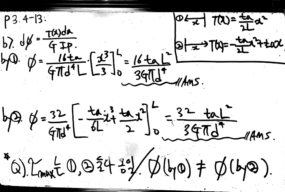 안녕하세요!! 비틀림쪽 복습하다가 자꾸 답이 다르게 나와서 질문드입니다. 기준점에따라 적분구간을 다르게 잡아야 하는건지 궁금합니다. 답변 완료된 질문과 답변은 수정 및 삭제가 불가합니다. |