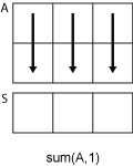 - sum(A,1)은 A의 열에 있는 연속된 요소에 대해 동작을 수행하고 각 열의 합으로 구성된 행 벡터를 반환합니다.