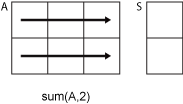 - sum(A,2)는 A의 행에 있는 연속된 요소에 대해 동작을 수행하고 각 행의 합으로 구성된 열 벡터를 반환합니다.