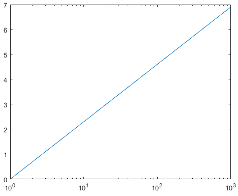 semilogx는 x축에 대해 로그 스케일을 사용하고 y축에 대해 선형 스케일을 사용하여 플롯을 만듭니다.