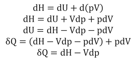 교수님은 du + pdv 는 앞에서 도출한 열역한 제 1법칙에 의거하여 델q와 같다고 말씀 하시면서(즉, 델q=du+pdv) 그 식은 엔탈피에서 도출한 식에 대입하셨는데,
