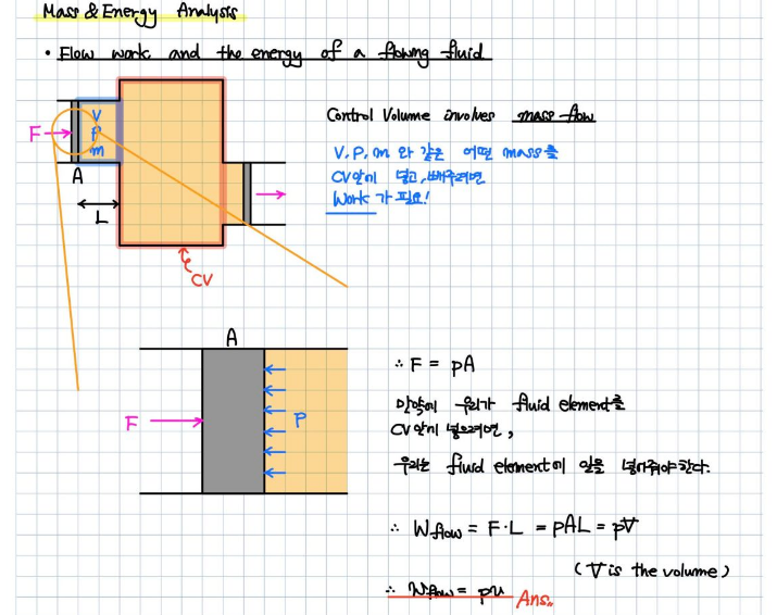 그리고 flow work(유동일)은 아래와 같이 설명될 수 있습니다.