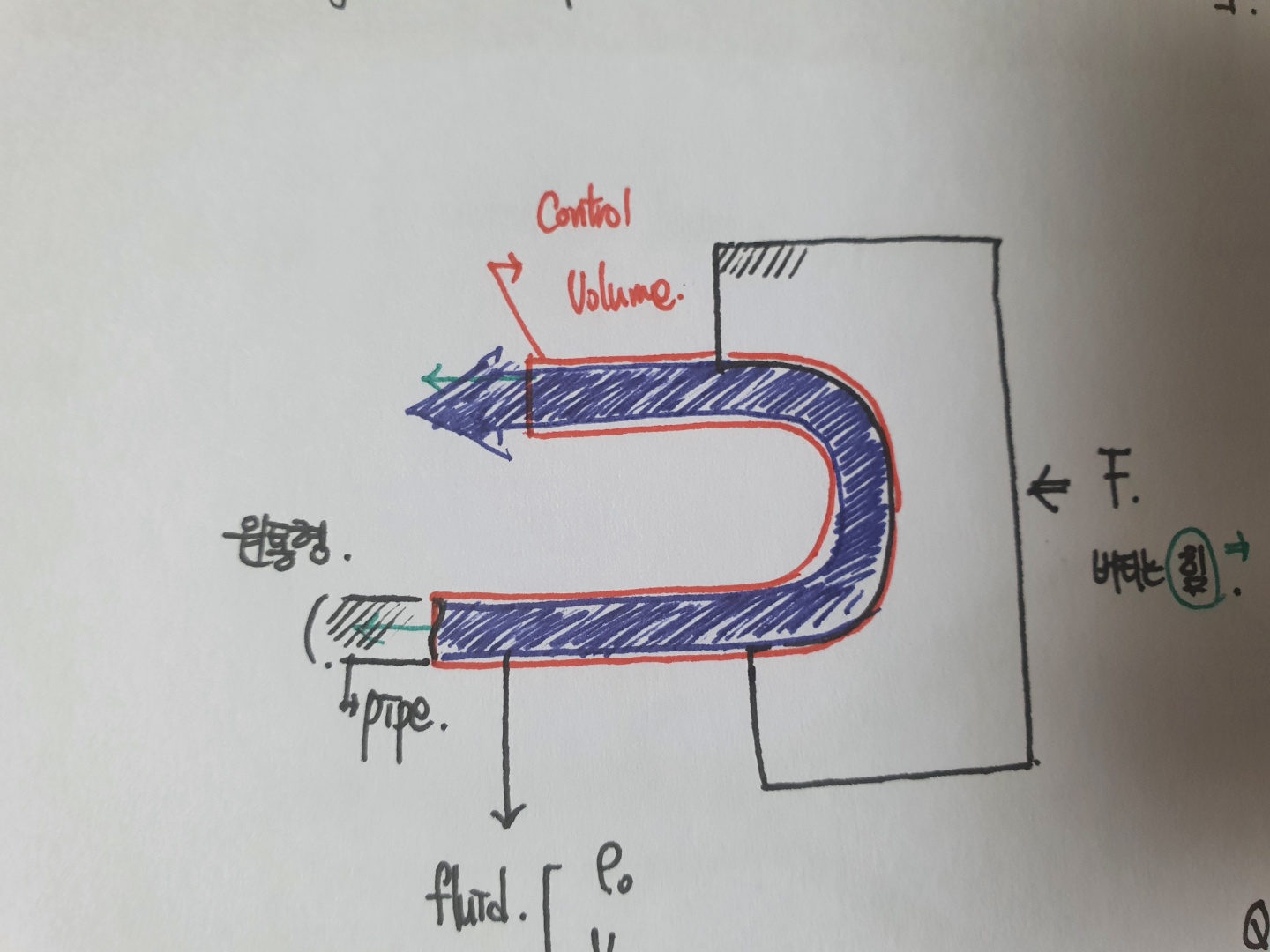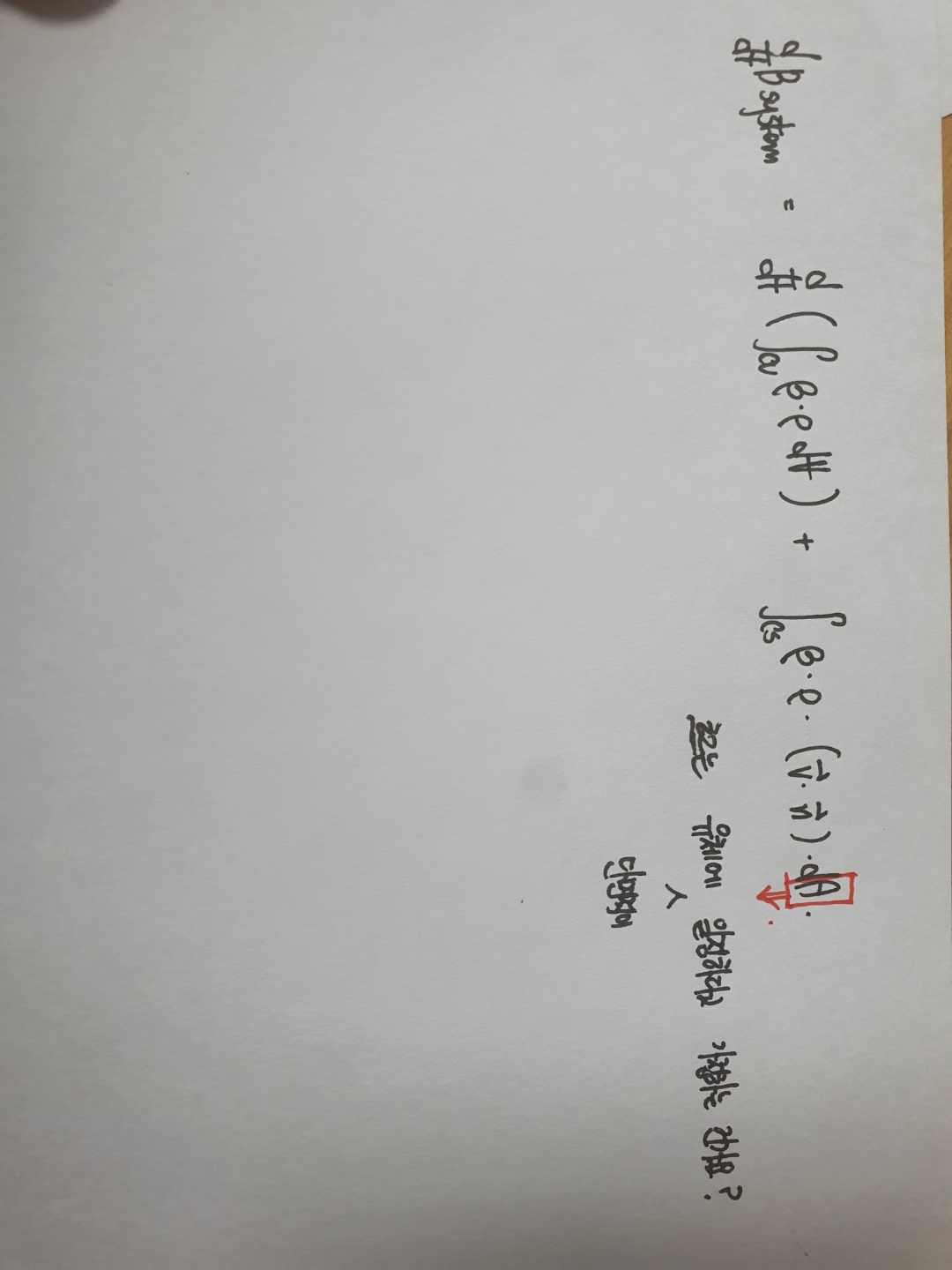첨부한 사진처럼 유체를 검사체적으로 잡았을 때, 유체의 흐름을 일정한 부피로 가정하고 그 단면적을 구하는 건가요??