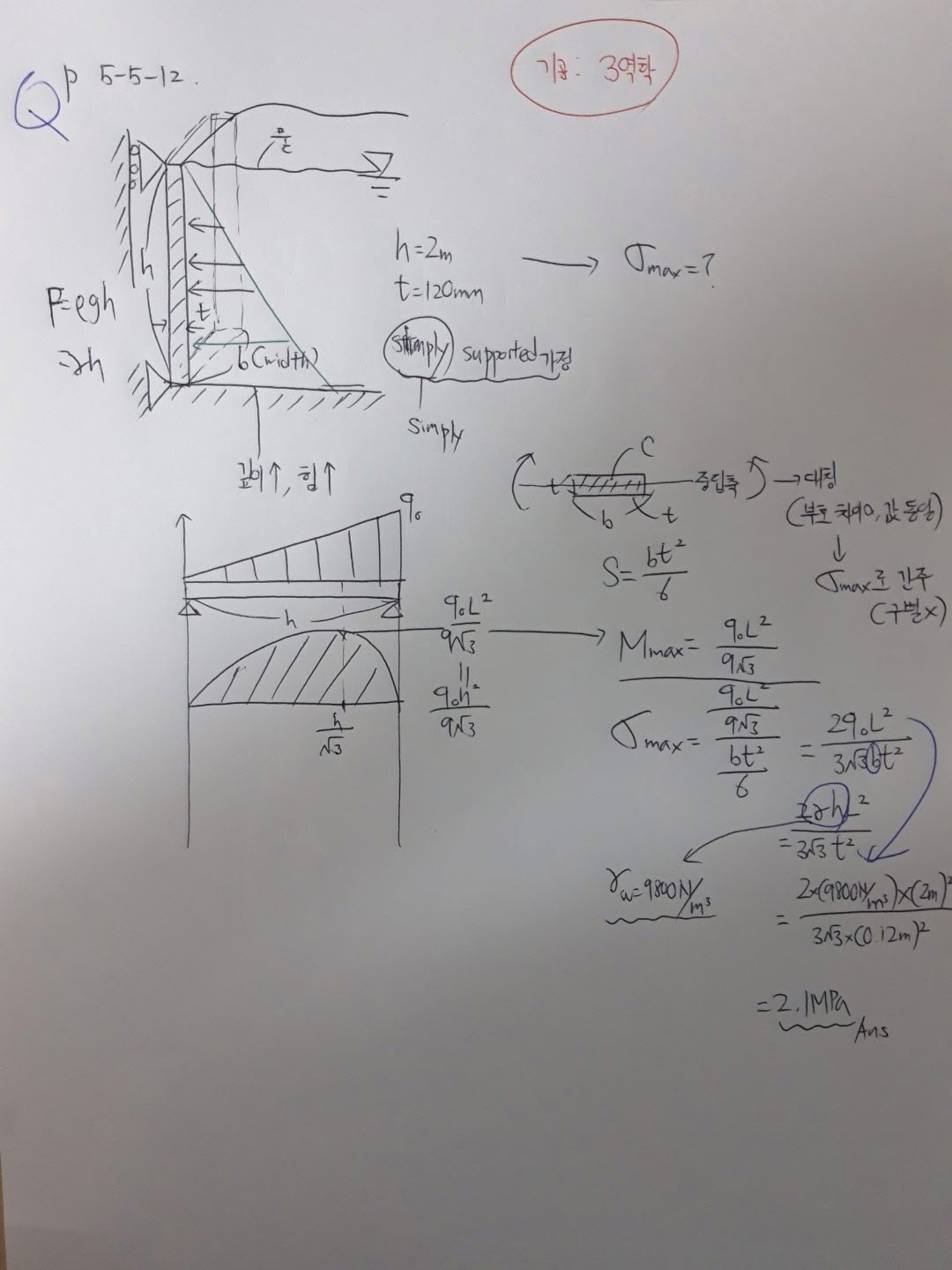 | 제목 | 답변완료 [고체역학 한방에 끝내기] 13강 43분 03초 / 마지막 문제 최대응력 질문 | ||