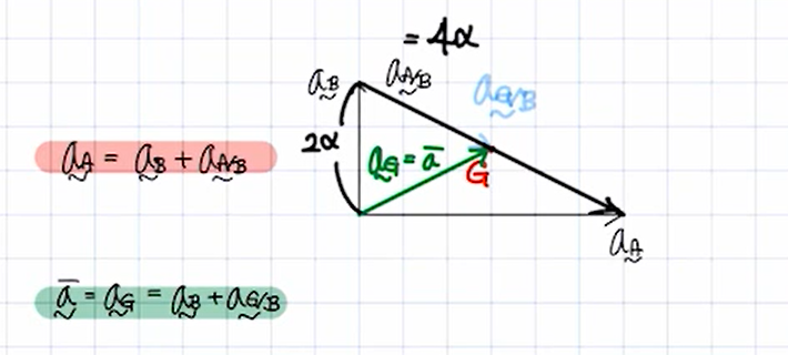 - 때문에 제가 문제를 풀 때 1)A와 B의 상대 가속도 관계를 먼저 세우고 나서 2)B와 G의 상대 가속도 관계를 세운 것입니다,